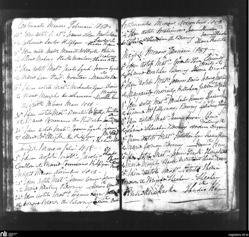 Abbeydorney; County of Kerry; Diocese of Kerry. Marriages, Feb. 1858 to Jan. 1859