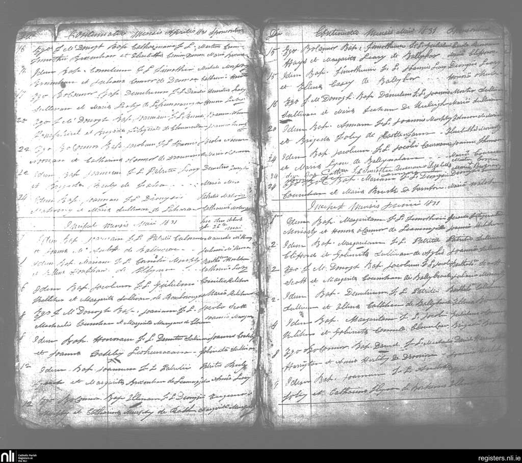 Molahiff; County of Kerry; Diocese of Kerry. Baptisms, Apr. 1831 to June 1831