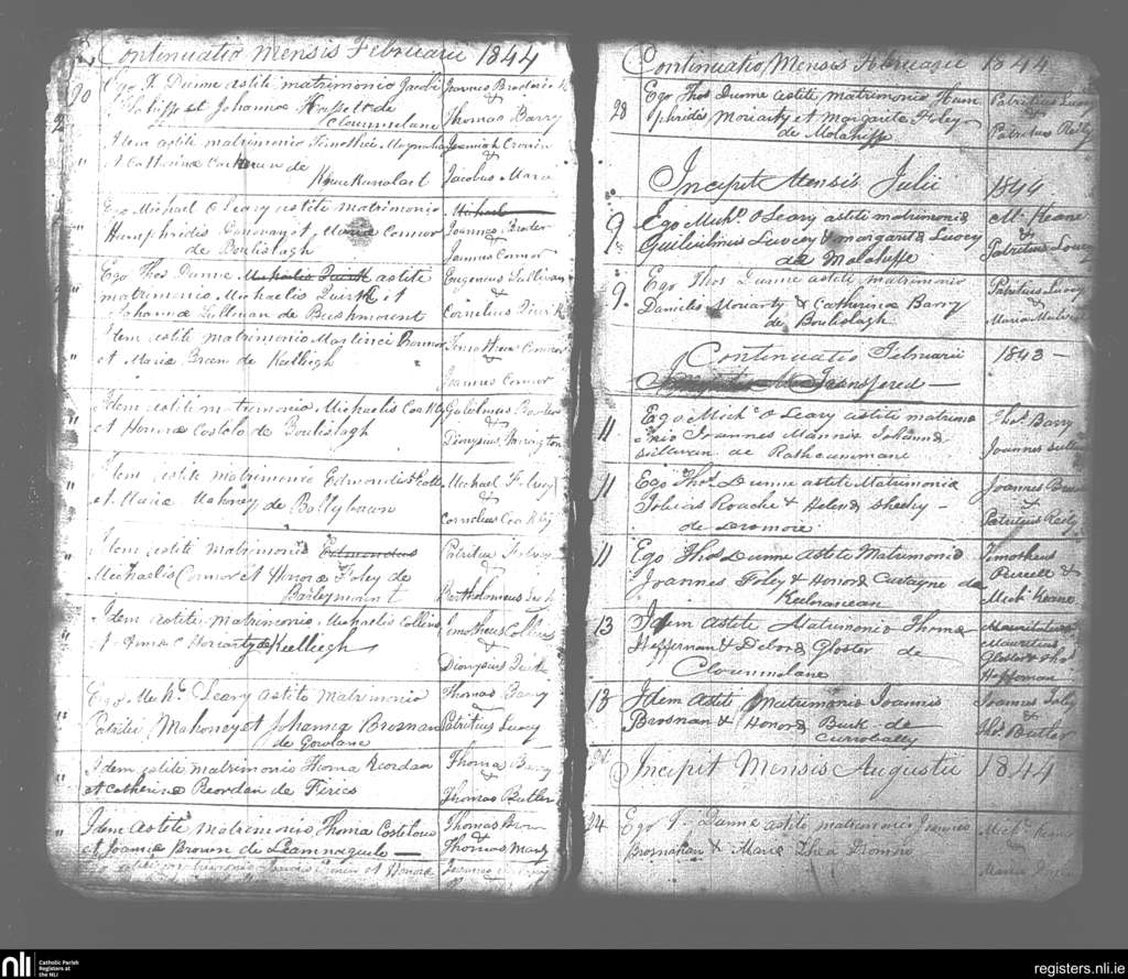 Molahiff; County of Kerry; Diocese of Kerry. Marriages, Aug. 1854 to Dec. 1856