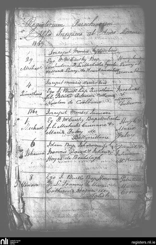 Molahiff; County of Kerry; Diocese of Kerry. Baptisms, Oct. 1870 to Jan. 1871