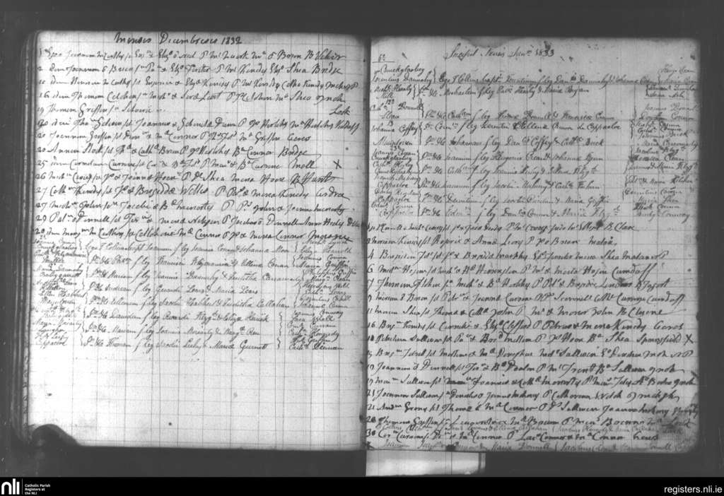 Ballanvohir; County of Kerry; Diocese of Kerry. Baptisms, Dec. 1832 to Jan. 1833