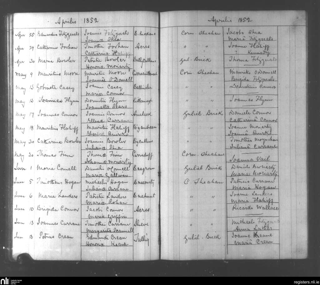 Ballanvohir; County of Kerry; Diocese of Kerry. Baptisms, Apr. 1852 to June 1852