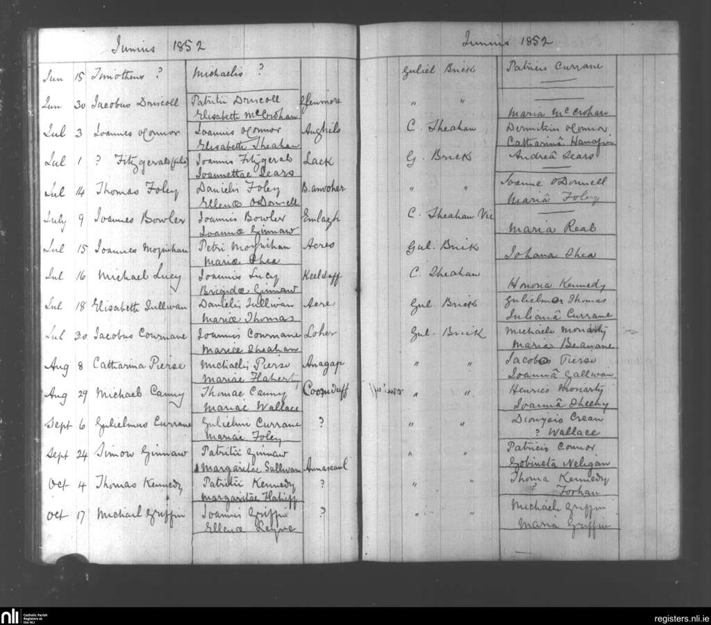 Ballanvohir; County of Kerry; Diocese of Kerry. Baptisms, June 1852 to Oct. 1852
