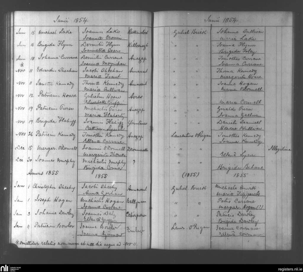 Ballanvohir; County of Kerry; Diocese of Kerry. Baptisms, June 1854 to Jan. 1855