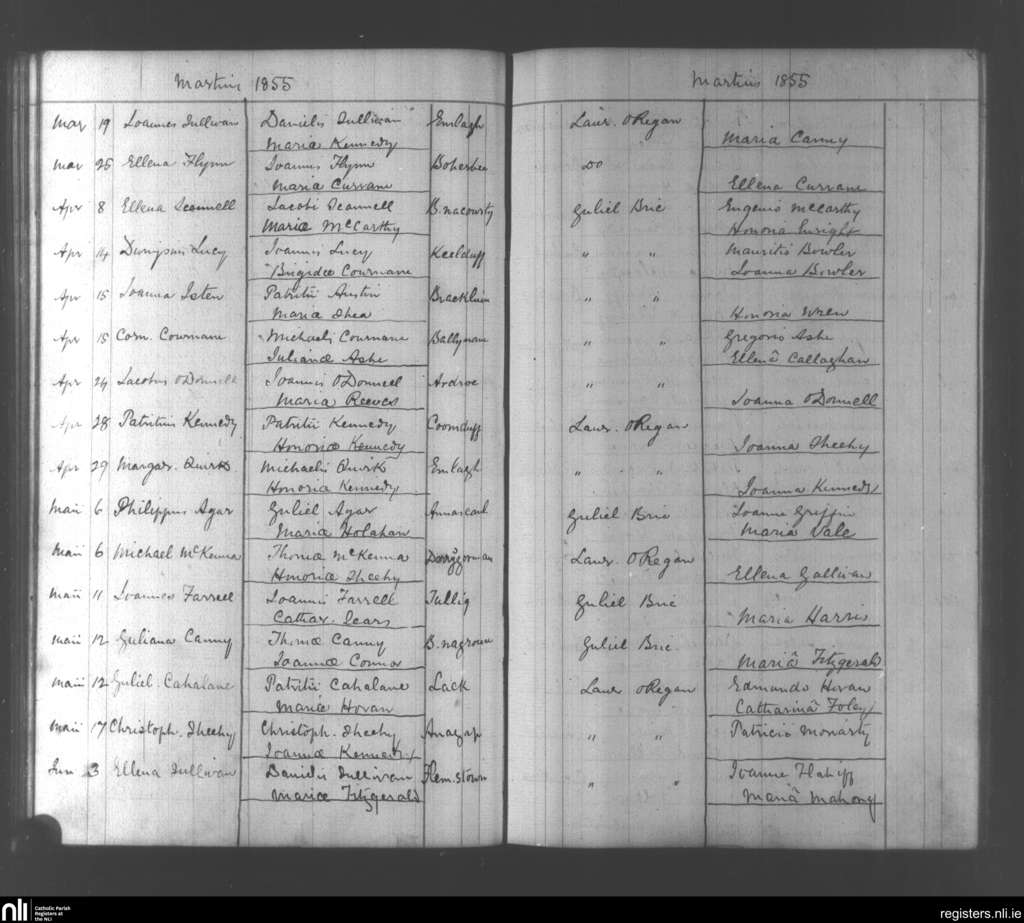 Ballanvohir; County of Kerry; Diocese of Kerry. Baptisms, Mar. 1855 to June 1855