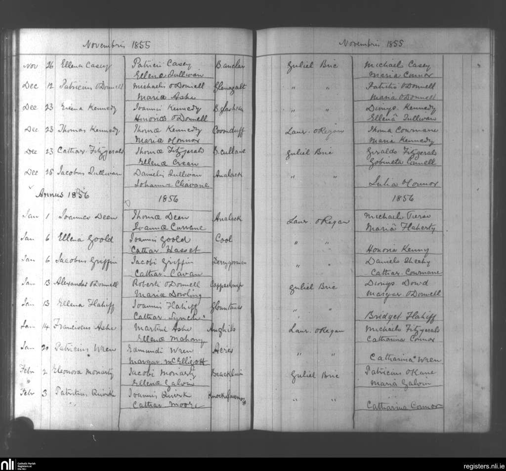 Ballanvohir; County of Kerry; Diocese of Kerry. Baptisms, Nov. 1855 to Feb. 1856