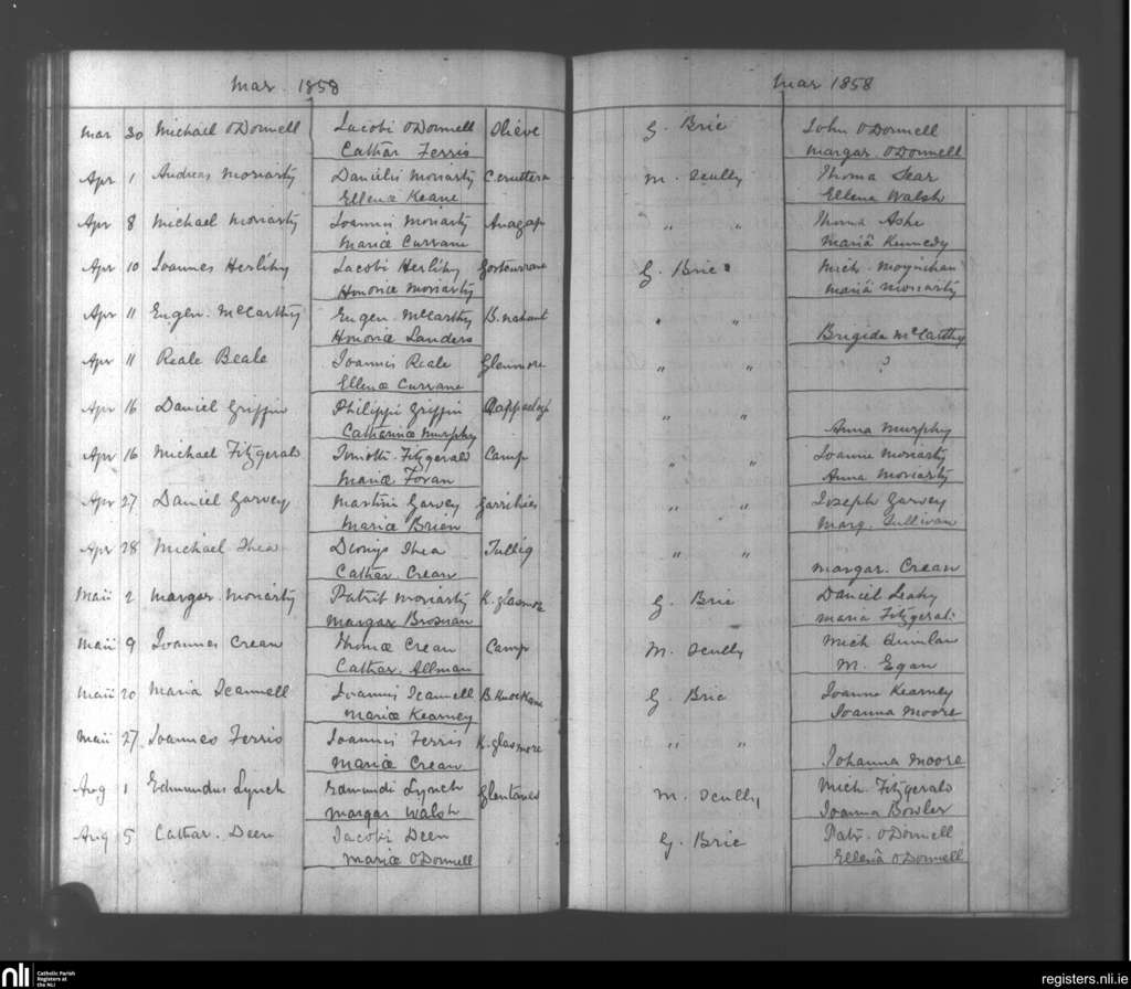 Ballanvohir; County of Kerry; Diocese of Kerry. Baptisms, Mar. 1858 to Aug. 1858