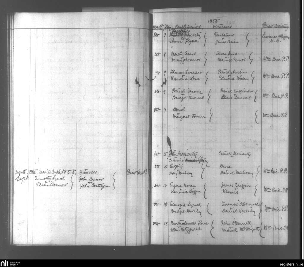 Ballanvohir; County of Kerry; Diocese of Kerry. Marriages, Sep. 1855 to Oct. 1855