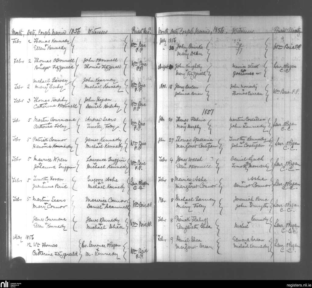 Ballanvohir; County of Kerry; Diocese of Kerry. Marriages, Feb. 1856 to Feb. 1857