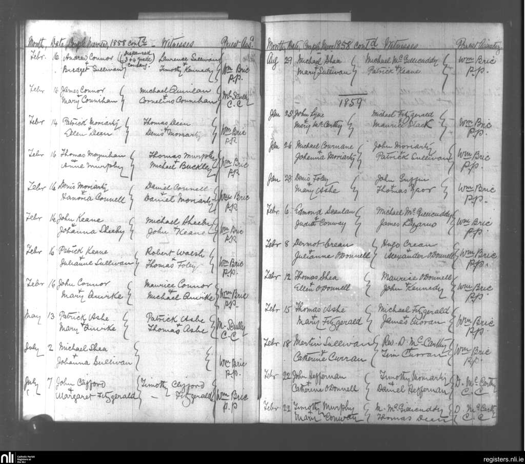 Ballanvohir; County of Kerry; Diocese of Kerry. Marriages, Feb. 1858 to Feb. 1859