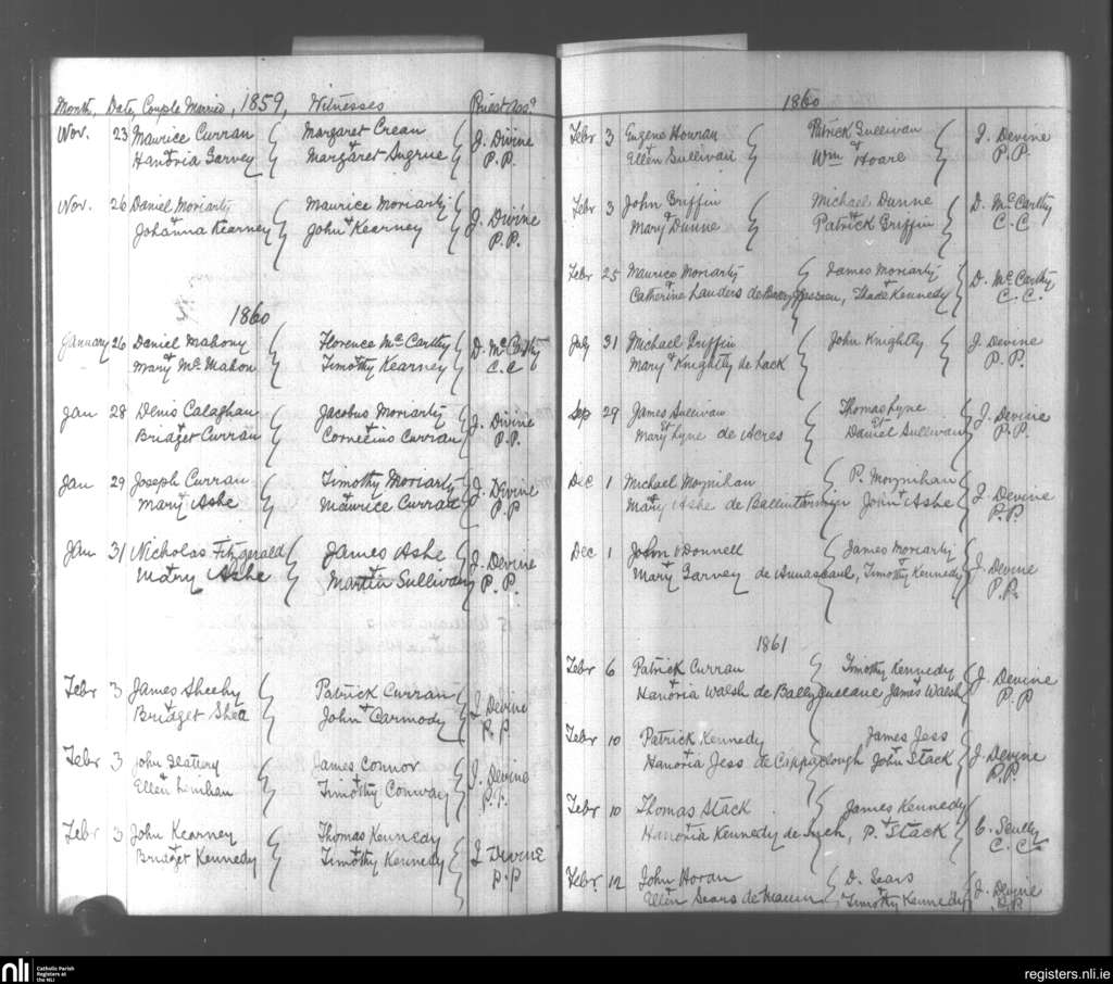 Ballanvohir; County of Kerry; Diocese of Kerry. Marriages, Nov. 1859 to Feb. 1861