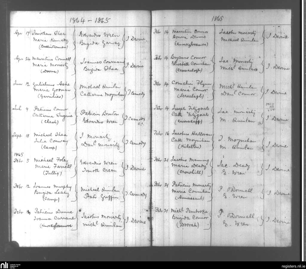 Ballanvohir; County of Kerry; Diocese of Kerry. Marriages, Apr. 1864 to Feb. 1865