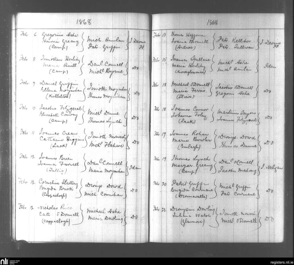Ballanvohir; County of Kerry; Diocese of Kerry. Marriages, Feb. 1868