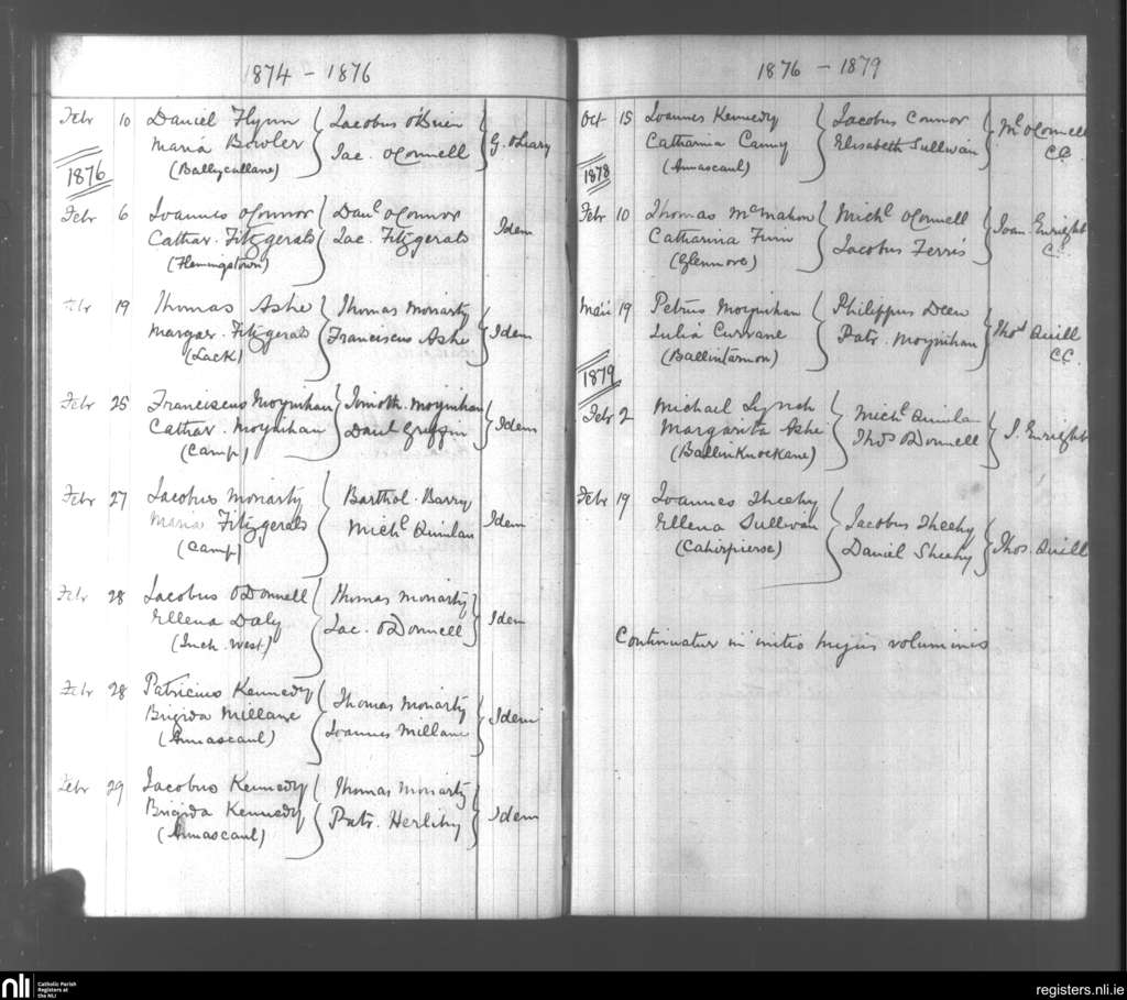 Ballanvohir; County of Kerry; Diocese of Kerry. Marriages, Feb. 1874 to Feb. 1879