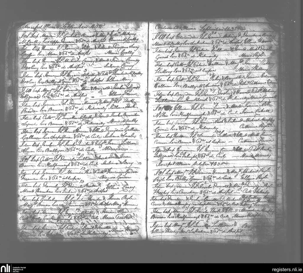 Ardfert; County of Kerry; Diocese of Kerry. Baptisms, Sep. 1835 to Oct. 1835