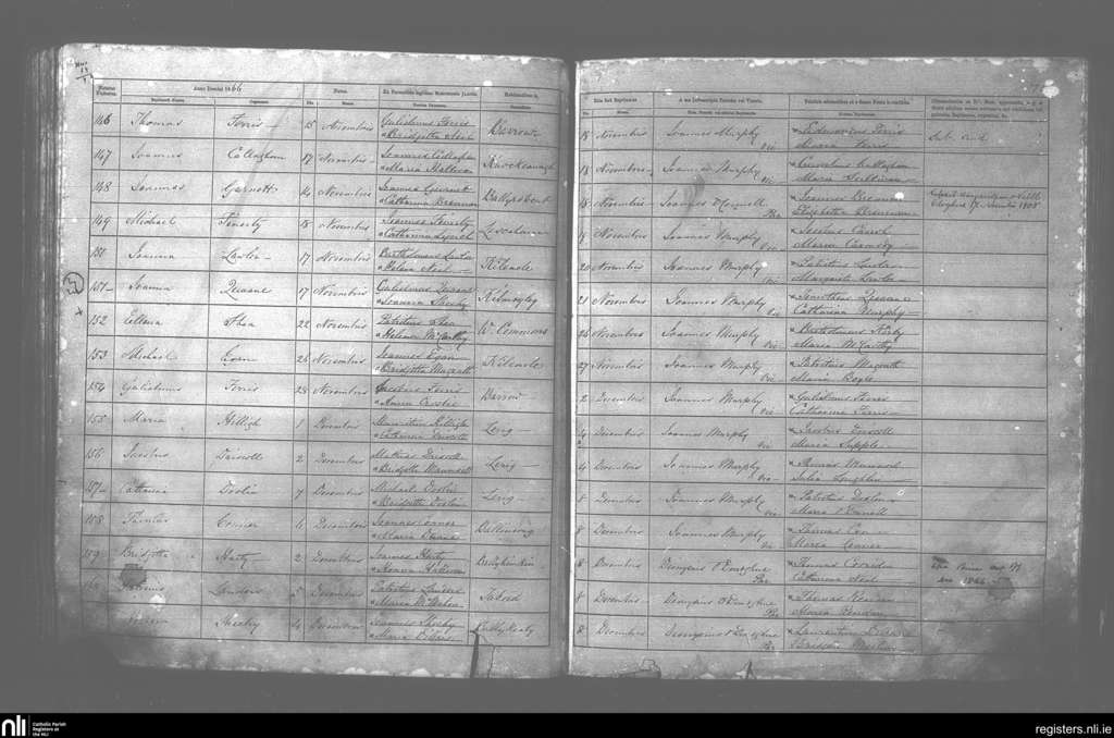 Ardfert; County of Kerry; Diocese of Kerry. Baptisms, Nov. 1866 to Dec. 1866