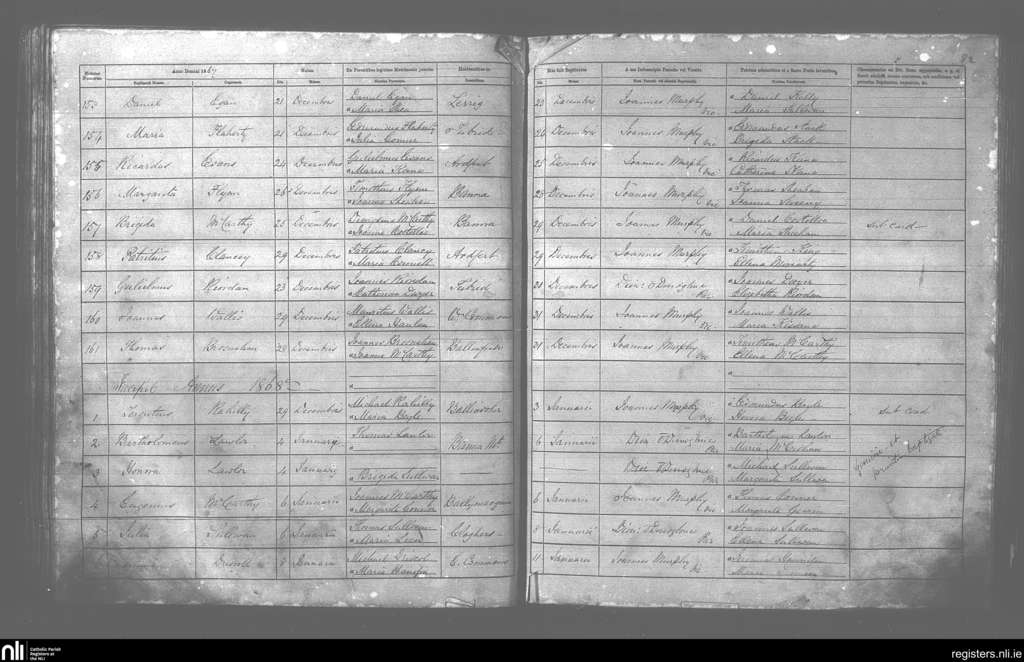 Ardfert; County of Kerry; Diocese of Kerry. Baptisms, Dec. 1867 to Jan. 1868