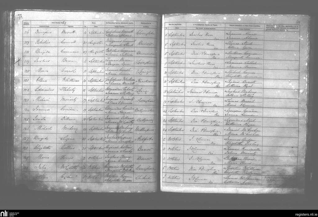 Ardfert; County of Kerry; Diocese of Kerry. Baptisms, Sep. 1869 to Oct. 1869