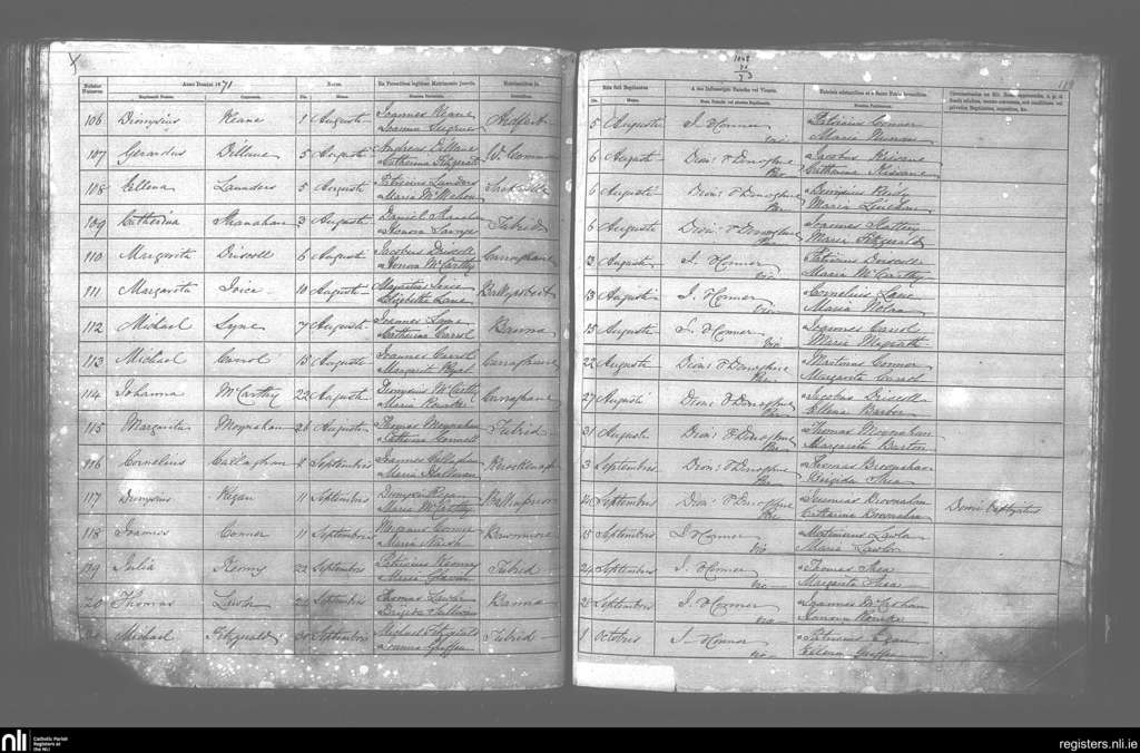 Ardfert; County of Kerry; Diocese of Kerry. Baptisms, Aug. 1871 to Oct. 1871