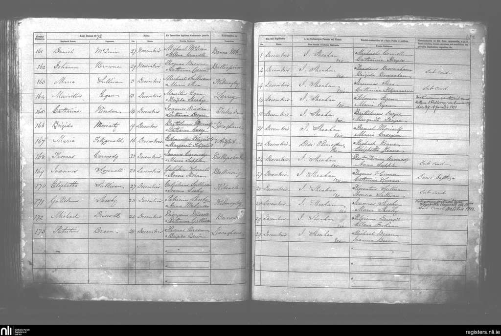 Ardfert; County of Kerry; Diocese of Kerry. Baptisms, Dec. 1872