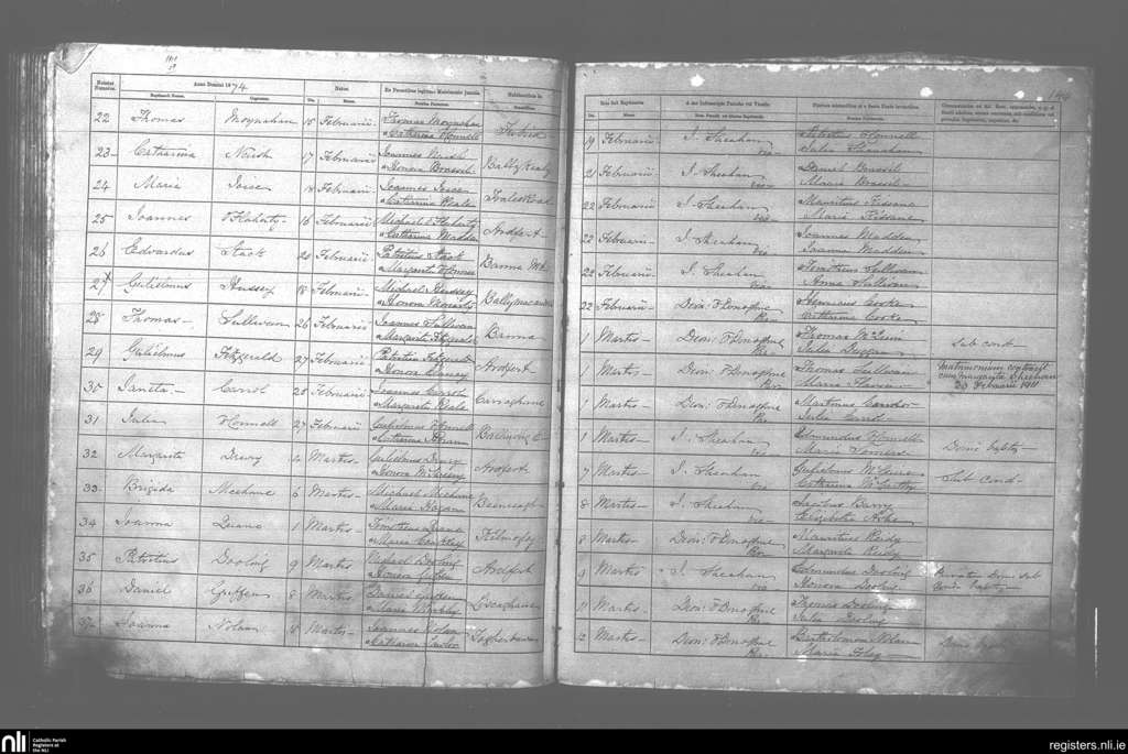 Ardfert; County of Kerry; Diocese of Kerry. Baptisms, Feb. 1874 to Mar. 1874