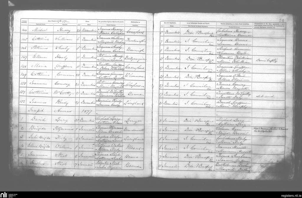Ardfert; County of Kerry; Diocese of Kerry. Baptisms, Dec. 1876 to Jan. 1877
