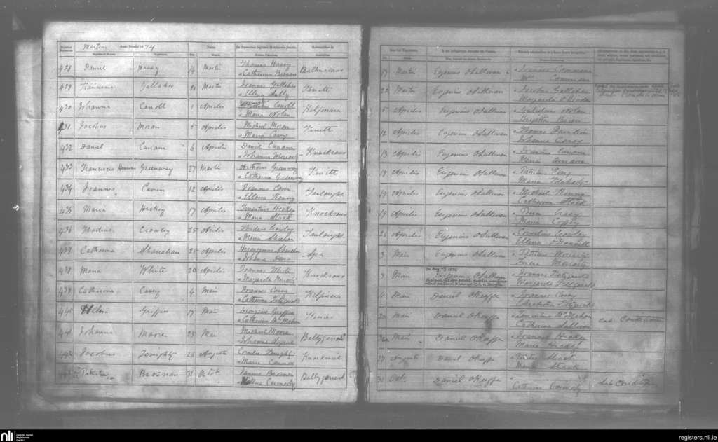 Spa; County of Kerry; Diocese of Kerry. Baptisms, Mar. 1874 to Oct. 1874