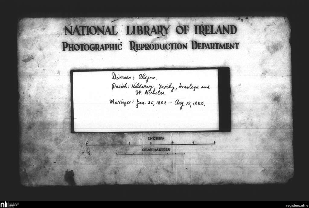 Kildorrery; County of Cork; Diocese of Cloyne. Marriages