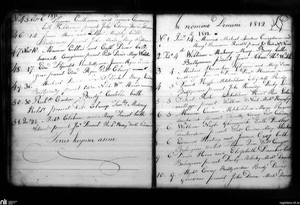 Kildorrery; County of Cork; Diocese of Cloyne. Marriages, Oct. 1811 to Feb. 1812