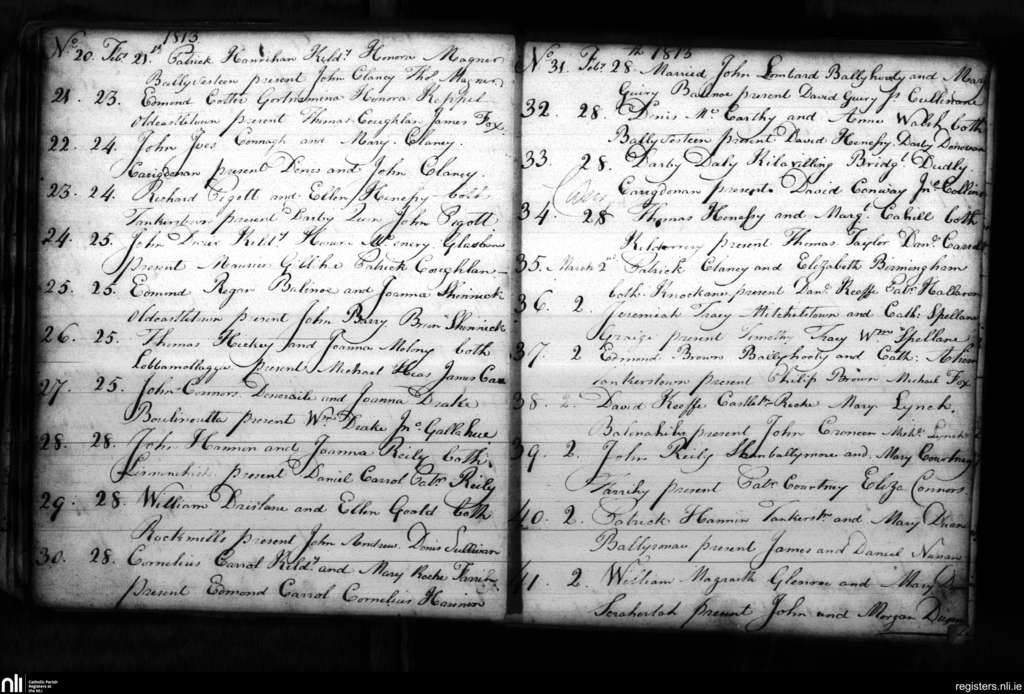 Kildorrery; County of Cork; Diocese of Cloyne. Marriages, Feb. 1813 to Mar. 1813
