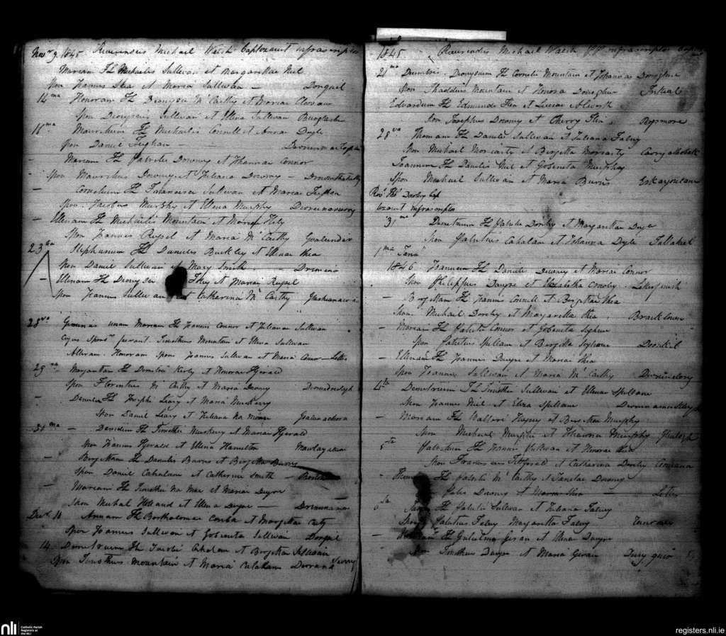 Sneem; County of Kerry; Diocese of Kerry. Baptisms, Nov. 1845 to Jan. 1846