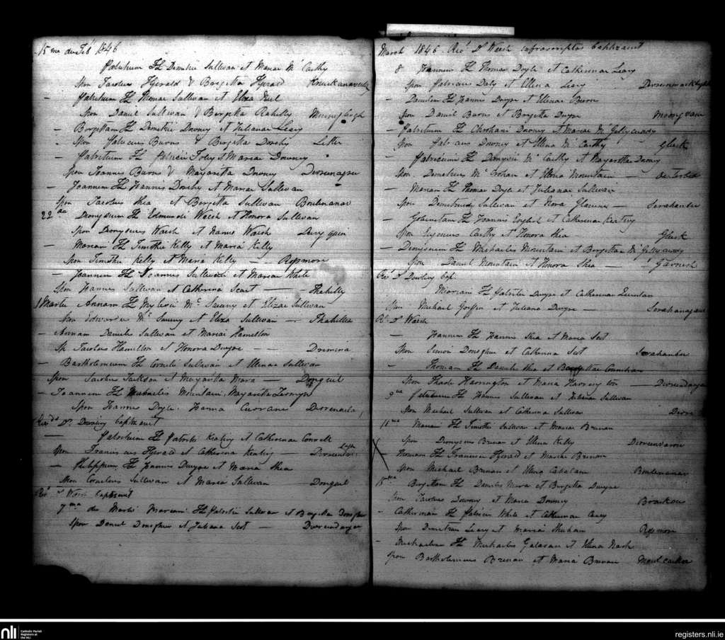 Sneem; County of Kerry; Diocese of Kerry. Baptisms, Feb. 1846 to Mar. 1846