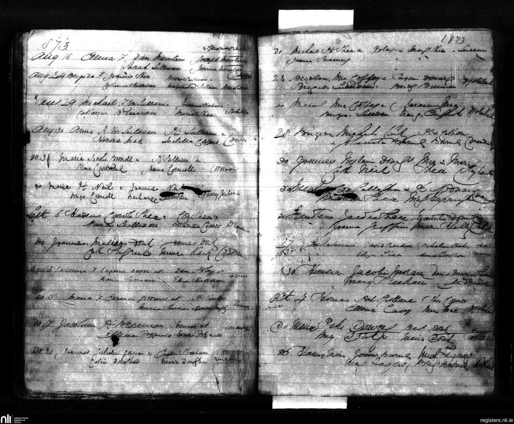 Sneem; County of Kerry; Diocese of Kerry. Baptisms, Aug. 1873 to Oct. 1873