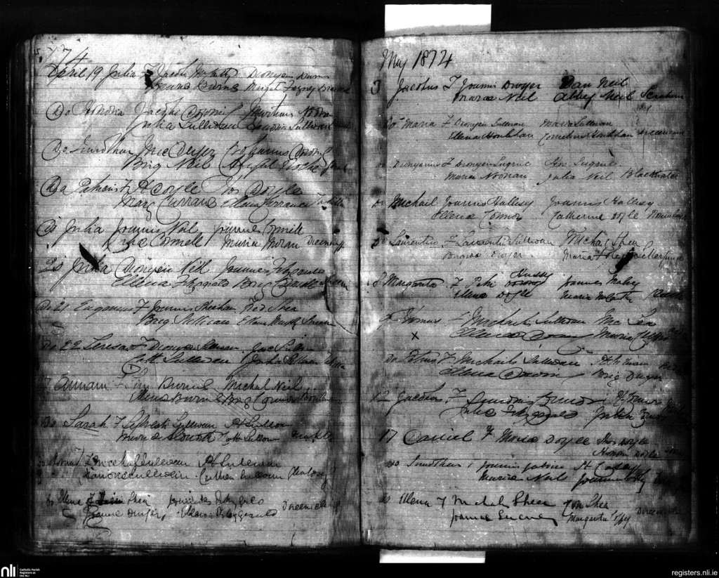 Sneem; County of Kerry; Diocese of Kerry. Baptisms, Apr. 1874 to May 1874