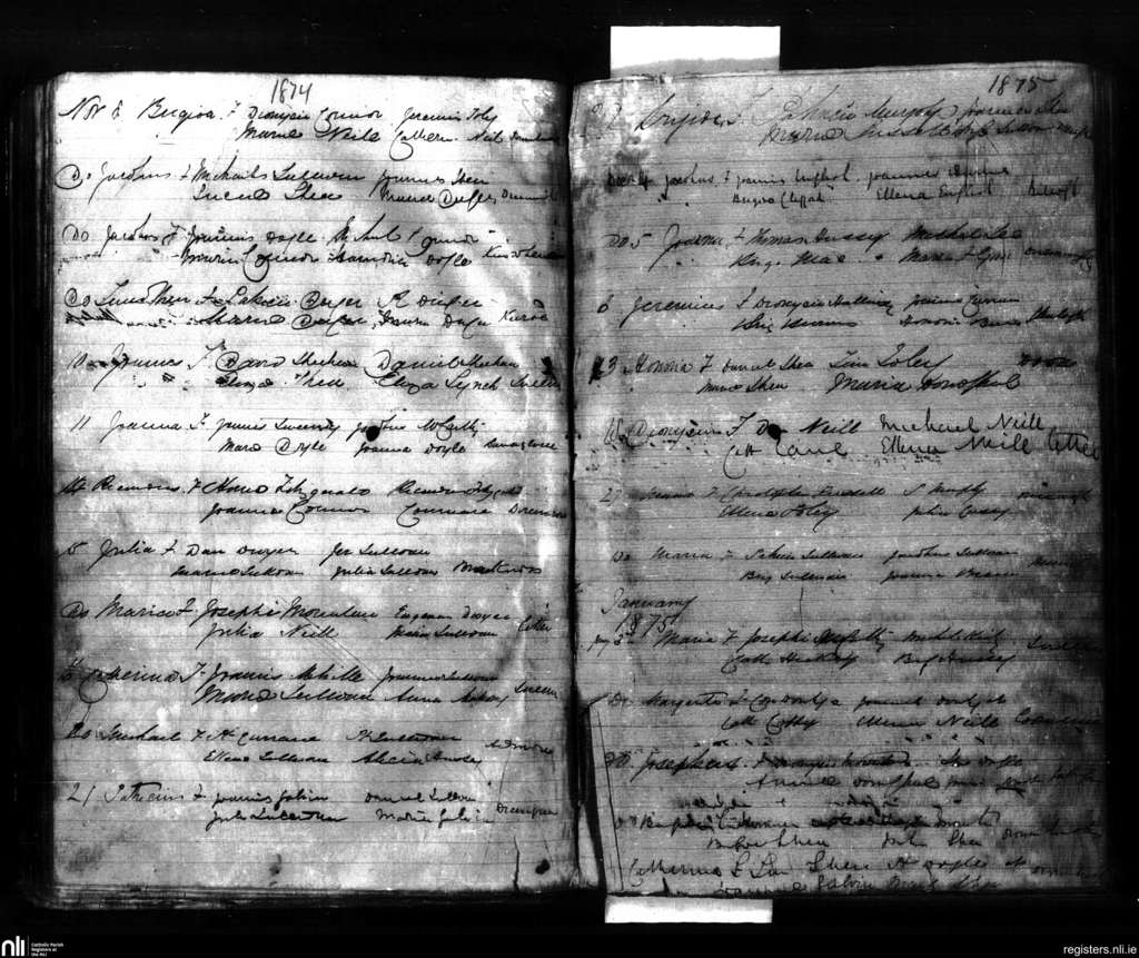 Sneem; County of Kerry; Diocese of Kerry. Baptisms, Nov. 1874 to Jan. 1875