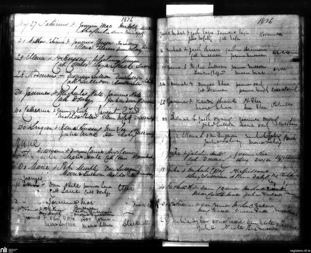 Sneem; County of Kerry; Diocese of Kerry. Baptisms, May 1876 to July 1876