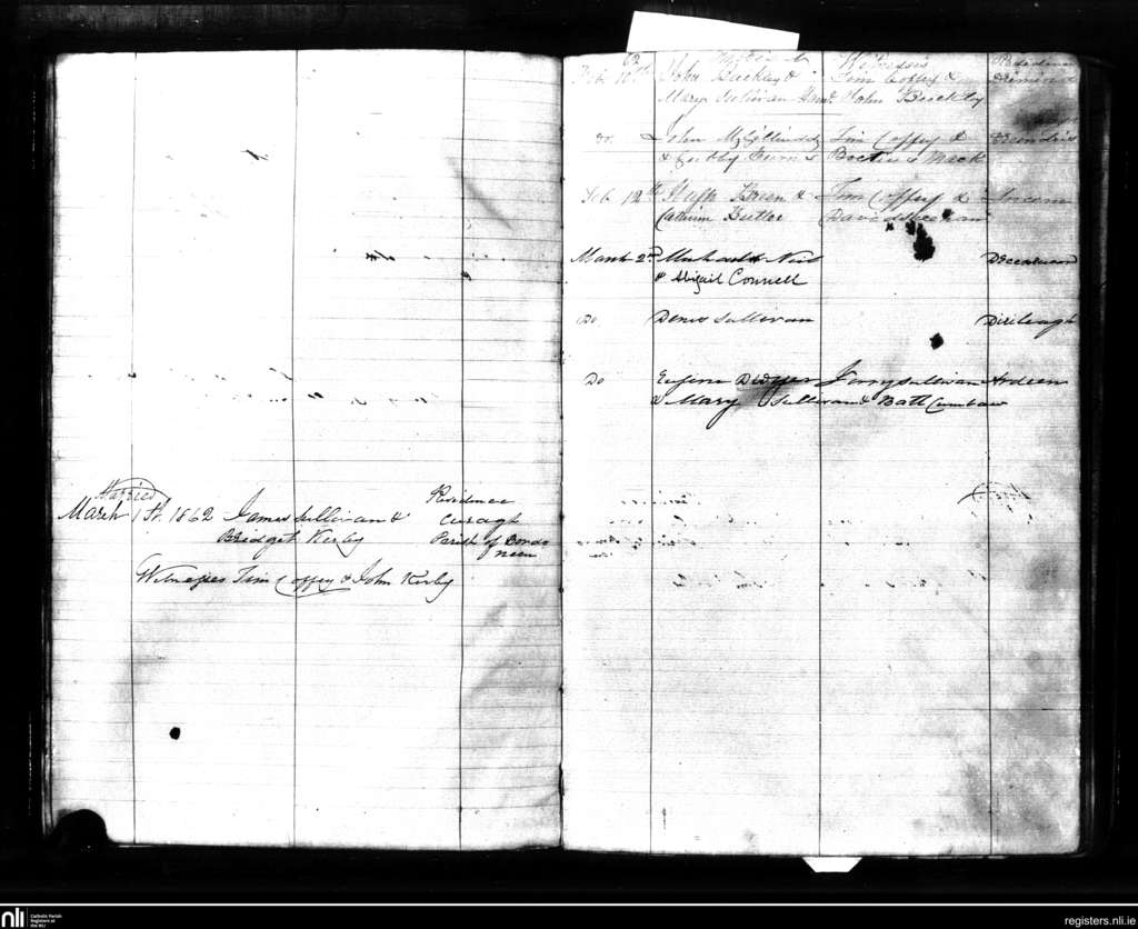 Sneem; County of Kerry; Diocese of Kerry. Marriages, Feb. 1862 to Mar. 1862