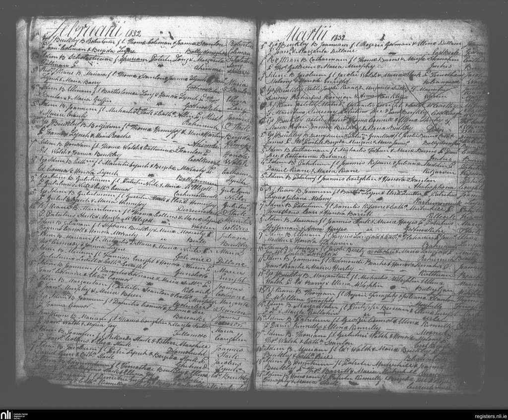 Ballybunion; County of Kerry; Diocese of Kerry. Baptisms, Feb. 1832 to Mar. 1832