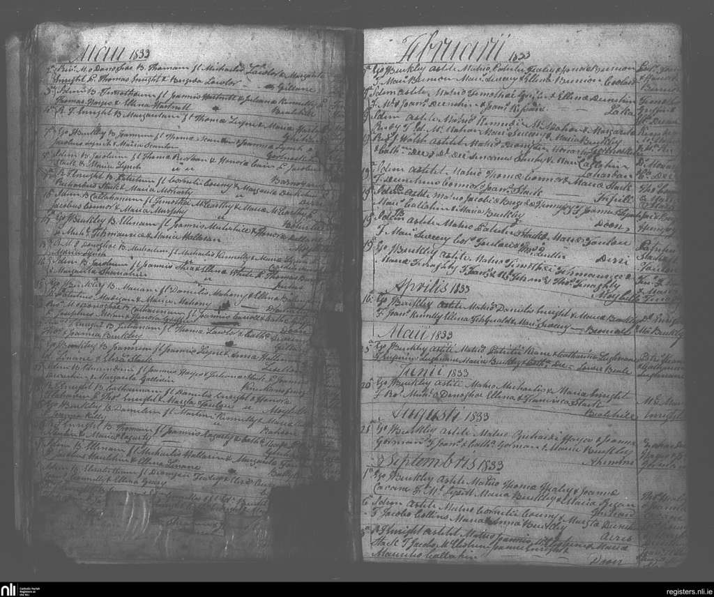 Ballybunion; County of Kerry; Diocese of Kerry. Baptisms, Marriages, Feb. 1833 to Sep. 1833