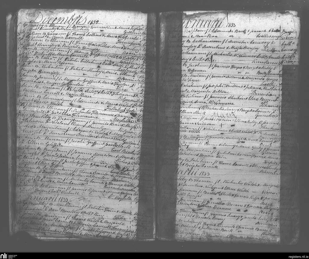 Ballybunion; County of Kerry; Diocese of Kerry. Baptisms, Dec. 1832 to Mar. 1833