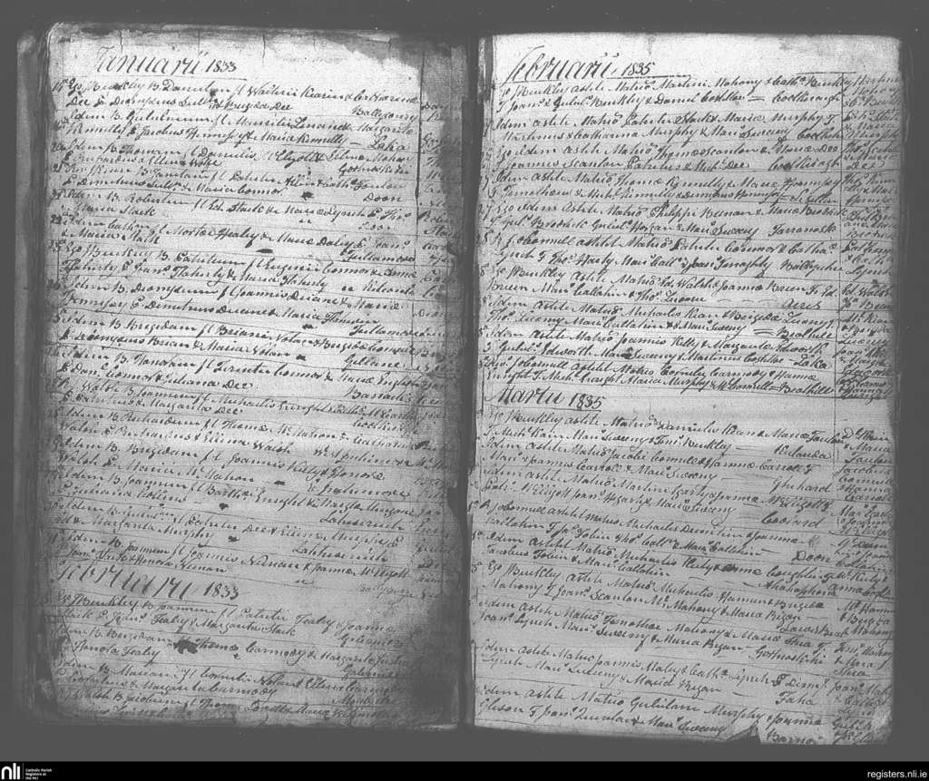 Ballybunion; County of Kerry; Diocese of Kerry. Baptisms, Marriages, Jan. 1833 to Mar. 1835