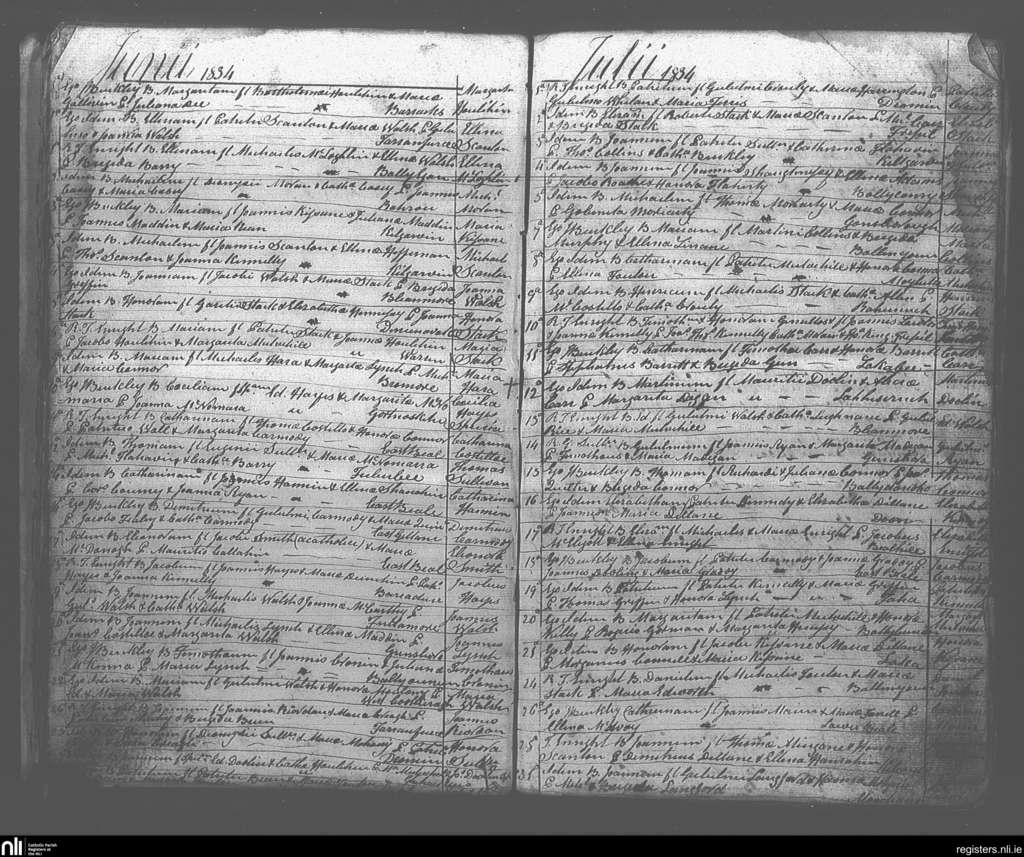 Ballybunion; County of Kerry; Diocese of Kerry. Baptisms, June 1834 to July 1834