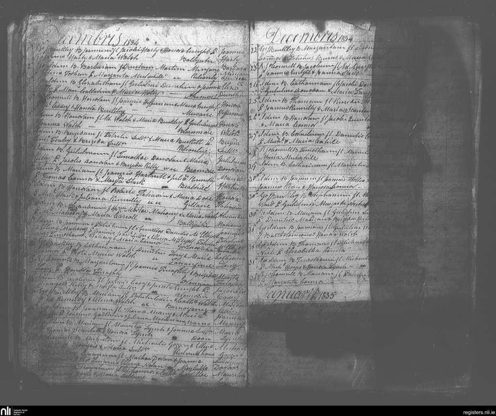 Ballybunion; County of Kerry; Diocese of Kerry. Baptisms, Dec. 1834 to Jan. 1835