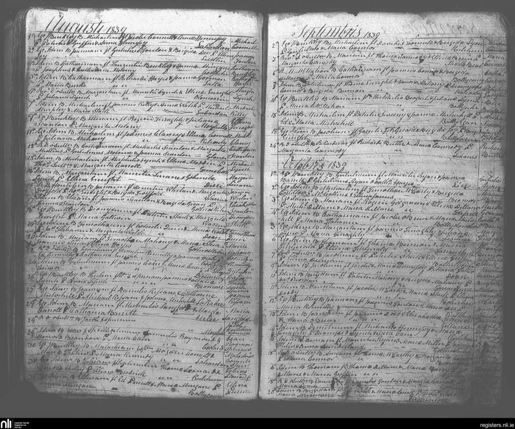 Ballybunion; County of Kerry; Diocese of Kerry. Baptisms, Aug. 1839 to Oct. 1839