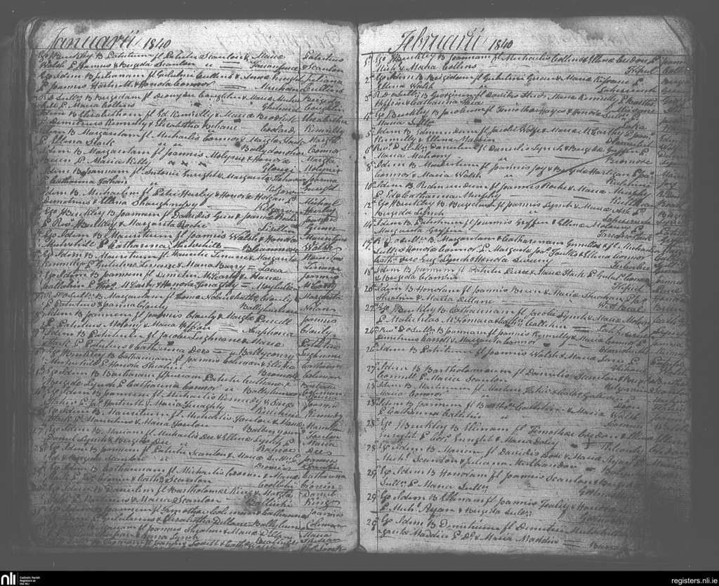 Ballybunion; County of Kerry; Diocese of Kerry. Baptisms, Jan. 1840 to Feb. 1840