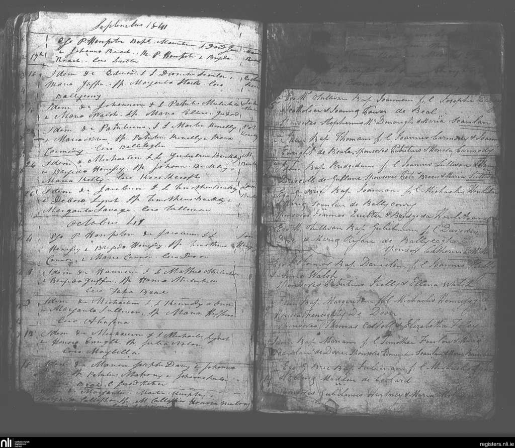Ballybunion; County of Kerry; Diocese of Kerry. Baptisms, Sep. 1841 to Nov. 1841