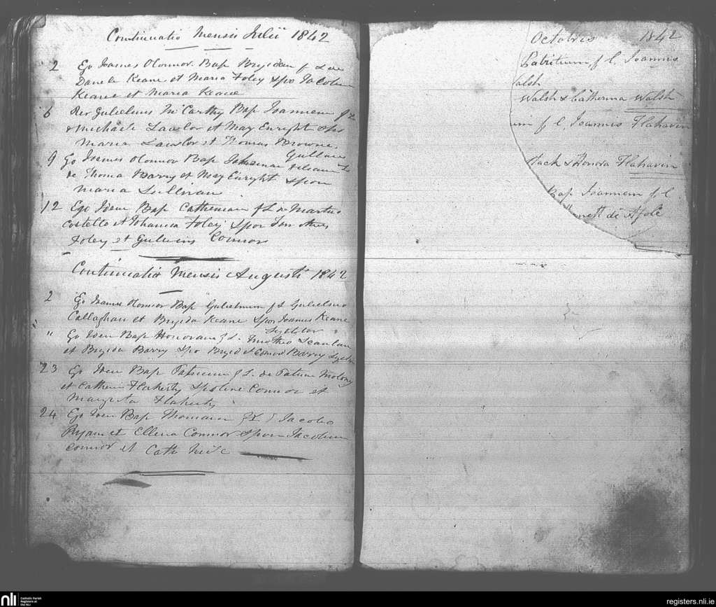 Ballybunion; County of Kerry; Diocese of Kerry. Baptisms, July 1842 to Aug. 1842