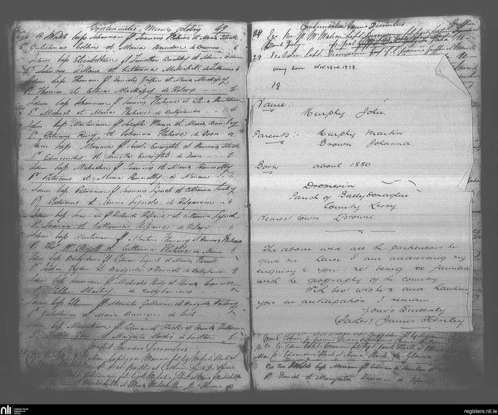 Ballybunion; County of Kerry; Diocese of Kerry. Baptisms, Oct. 1849 to Feb. 1850