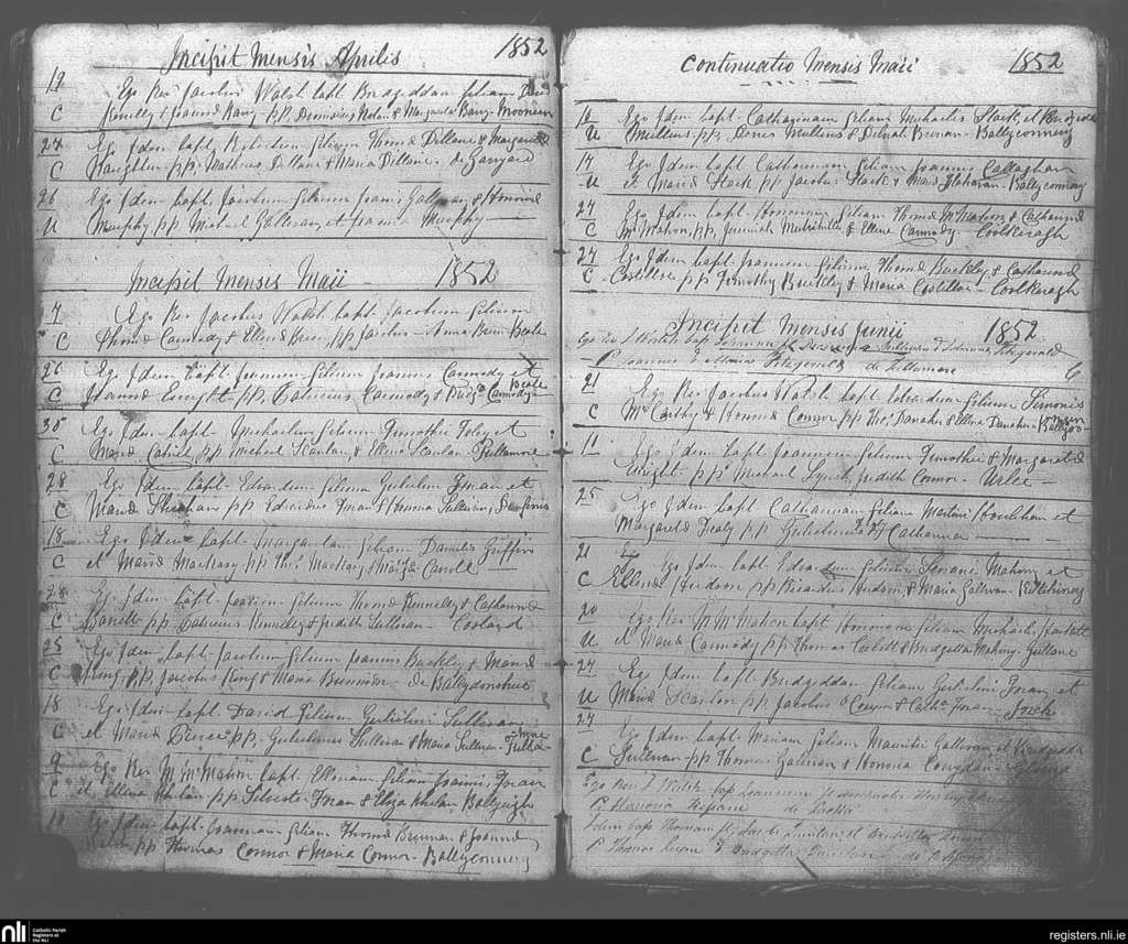Ballybunion; County of Kerry; Diocese of Kerry. Baptisms, Apr. 1852 to June 1852