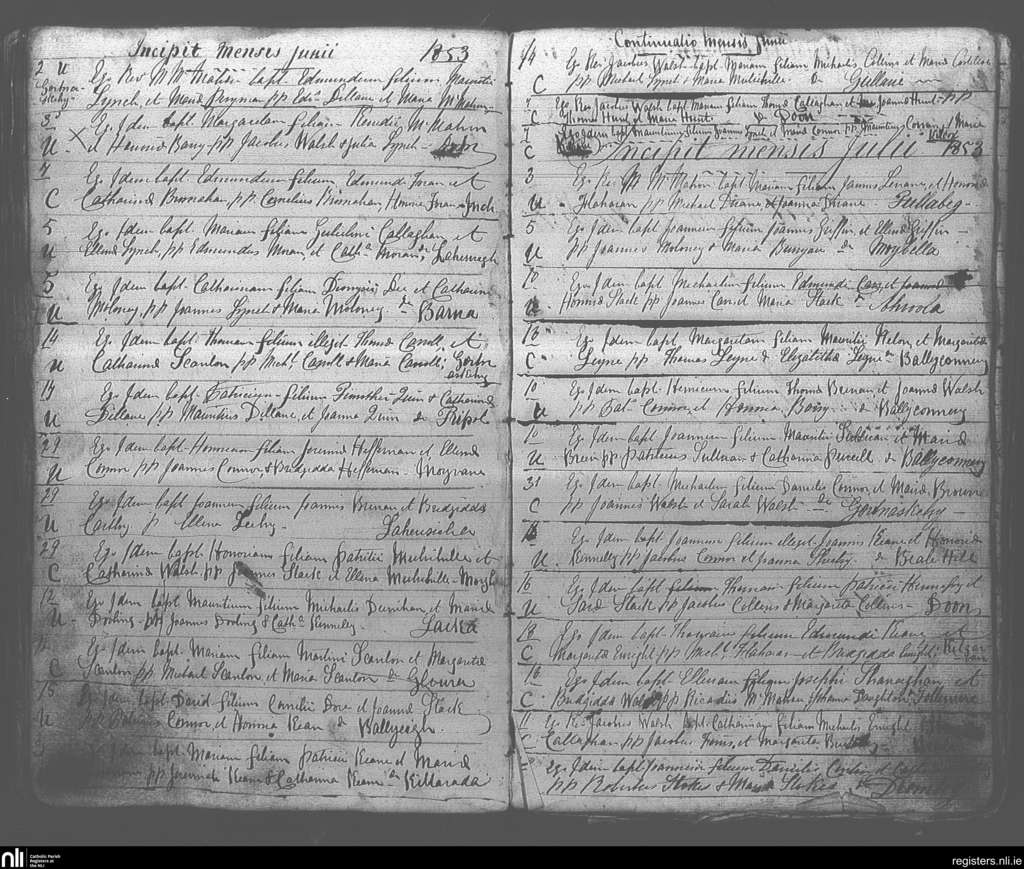 Ballybunion; County of Kerry; Diocese of Kerry. Baptisms, June 1853 to July 1853